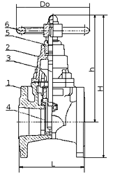 на Рn 1.0 МПа (10кгс/см2): 1 — корпус, 2 — крышка, 3 — шпиндель, 4 — клин