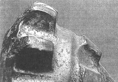 Такой вид из носа зависит от многих факторов, таких как вид породы, наплав зубьев, режим бурения. Причиной этого вида износа может быть, например, малая нагрузка на долото при высокой частоте вращения