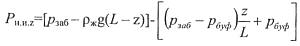 где рзаб - забойное давление. Па; ρж = ρв=ρн - плотность жидкости в скважине, кг/м3; pбуф - буферное устьевое давление, Па.