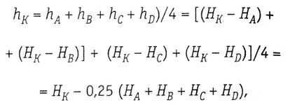 где НK — отметка для котлована; НА, НВ, НС, НD - высоты углов котлована на уров физической поверхности земли.