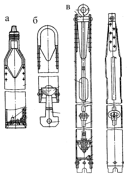 Желонка с полусферическим клапанам и копьем (см. табл. 7.56, рис. 7.88, б) применяется для забора разжиженной массы и при проходке песков. Полусферический клапан обеспечивает плотное закрытие желонки, а копье — предварительное рыхление породы.