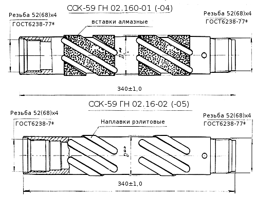 * D=59,2 (76,2) мм - для скважин диаметром 56