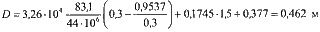 Пример 11.2. Определить диаметр долота для следующих условий: протяженность интервала крепления 2000 м. Отклонение от вертикали 400 м (sin α=0,2); средняя интенсивность искривления 2,5°/10 м.