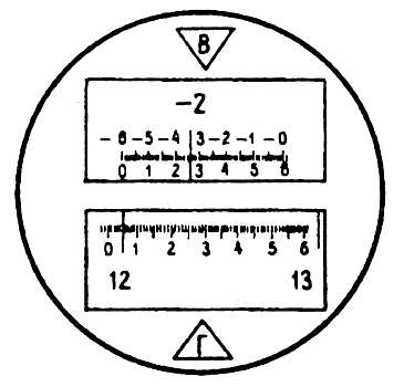Теодолиты ТЗО, 2Т30 имеют одностороннюю отсчетную систему, оценка доли деления круга выполняется на глаз по неподвижному индексу. На рисунке 1.79 отсчеты по горизонтальному кругу: а — 70°05', б — 18°02,0', в — 111°37,5'; по вертикальному: а — 358°46', б +1°36,5', в - 0°42,5'.